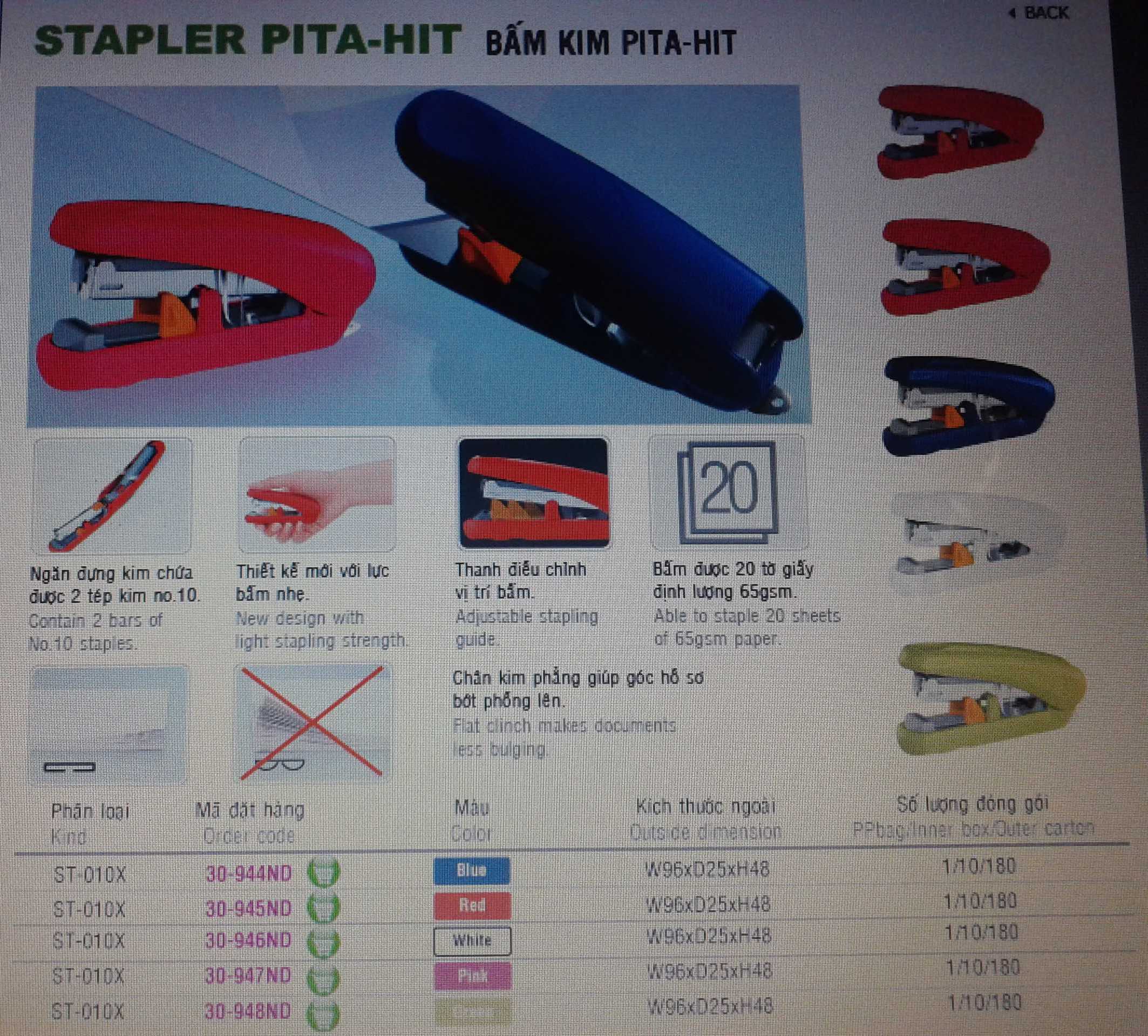 Sản phẩm máy bấm kim 10 PITA-HIT (  Sản phẩmMới )